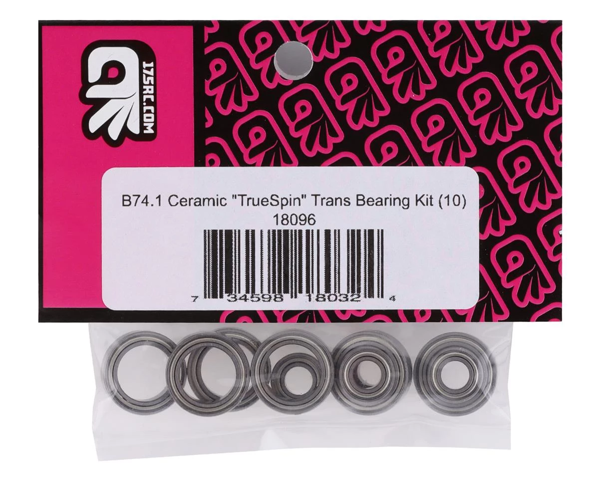The 175RC Associate B74.1 Ceramic “TrueSpin” Transmission Bearing Kit is a perfect optional bearing kit for your Team Associated B74.1. Ceramic bearings have less drag than standard steel bearings allowing for a more efficient drivetrain while not sacrificing durability. Package includes one complete B6.3 transmission bearing set.