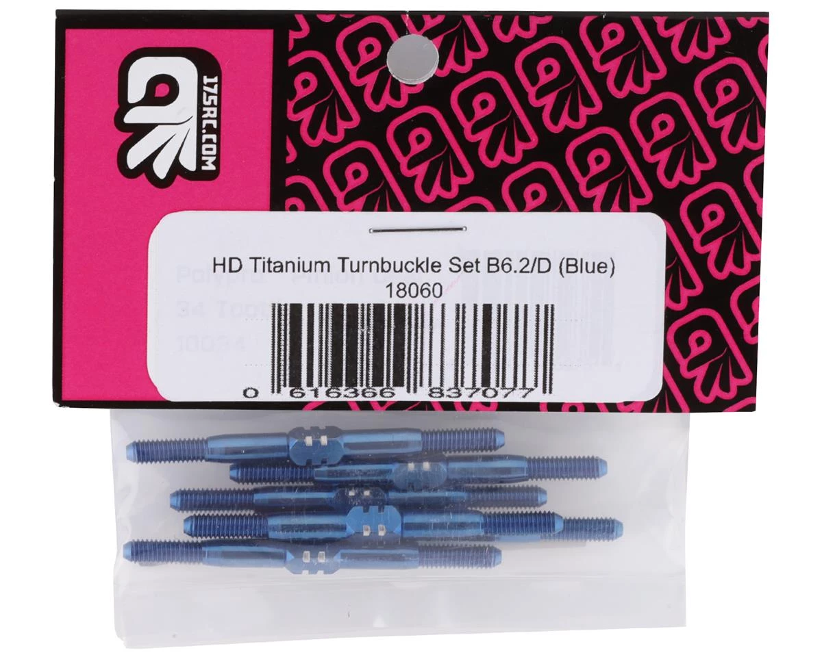 The 175RC B6.2/B6.2D HD Titanium Turnbuckle Set is an optional upgrade for the Team Associated RC10 B6.2 and B6.2D models. Titanium is stronger and lighter than the stock turnbuckles, and the turnbuckles are directional, allowing you to identify the direction that they should be installed.