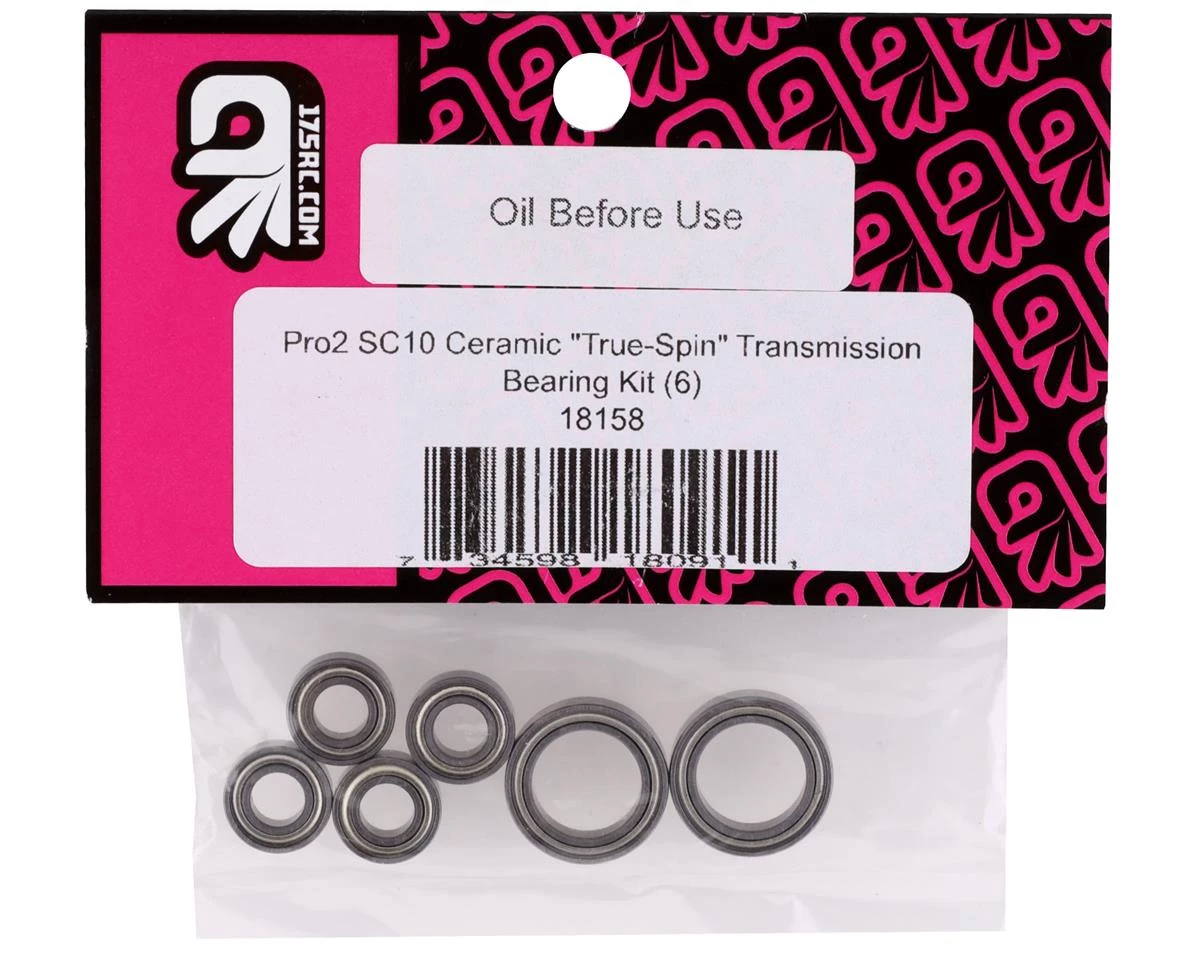 The 175RC Associated Pro2 SC10 Ceramic “TrueSpin” Transmission Bearing Kit is a perfect optional bearing kit for your Team Associated Pro2 SC10. Ceramic bearings have less drag than standard steel bearings allowing for a more efficient drivetrain while not sacrificing durability. Package includes one complete transmission bearing set.
