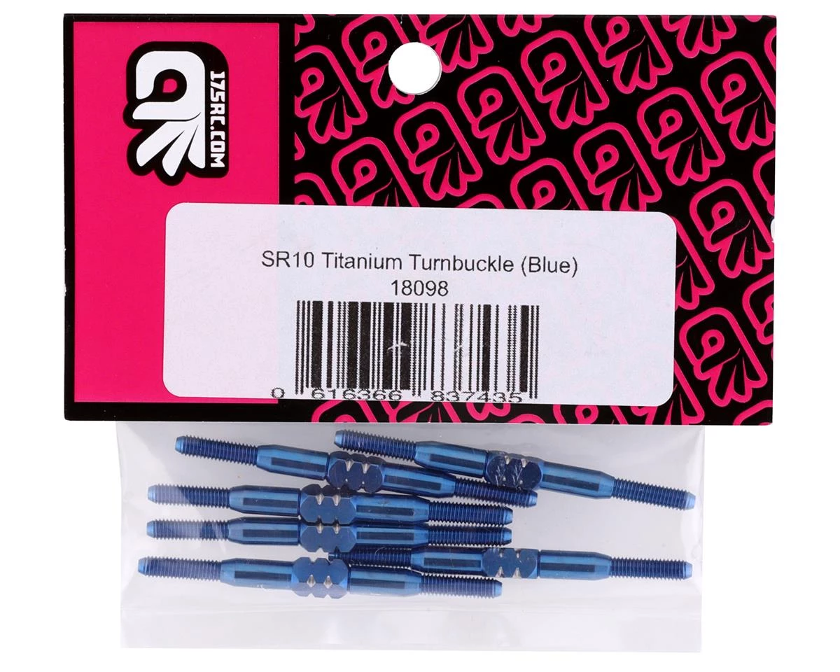 175RC Associated SR10 Titanium Turnbuckle Set. These titanium turnbuckles are lighter and stronger that stock turnbuckles. Notched center section shows direction allowing for quick and easy adjustments. Plus, they are available in a variety of anodized color options making it easy to build up a unique chassis. Package includes six optional turnbuckles.