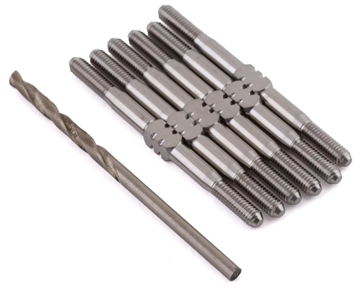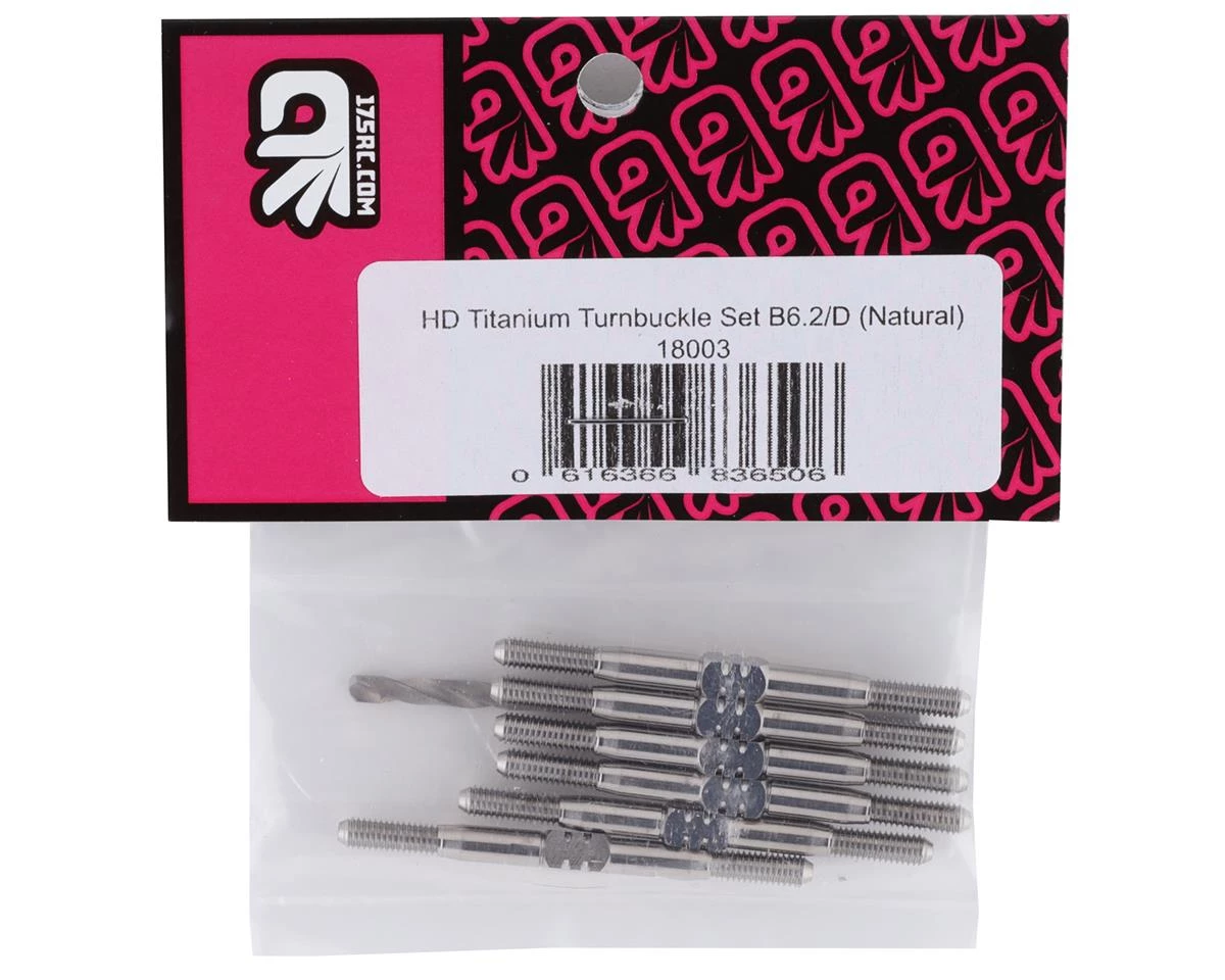 The 175RC B6.2/B6.2D HD Titanium Turnbuckle Set is an optional upgrade for the Team Associated RC10 B6.2 and B6.2D models. Titanium is stronger and lighter than the stock turnbuckles, and the turnbuckles are directional, allowing you to identify the direction that they should be installed.