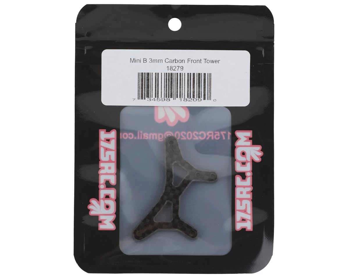 175RC Mini-B 3mm Carbon front Tower. This optional shock tower is intended for the Losi Mini-B. Using this will allow for a more rigid front shock tower adding consistency. Package includes one shock tower.
