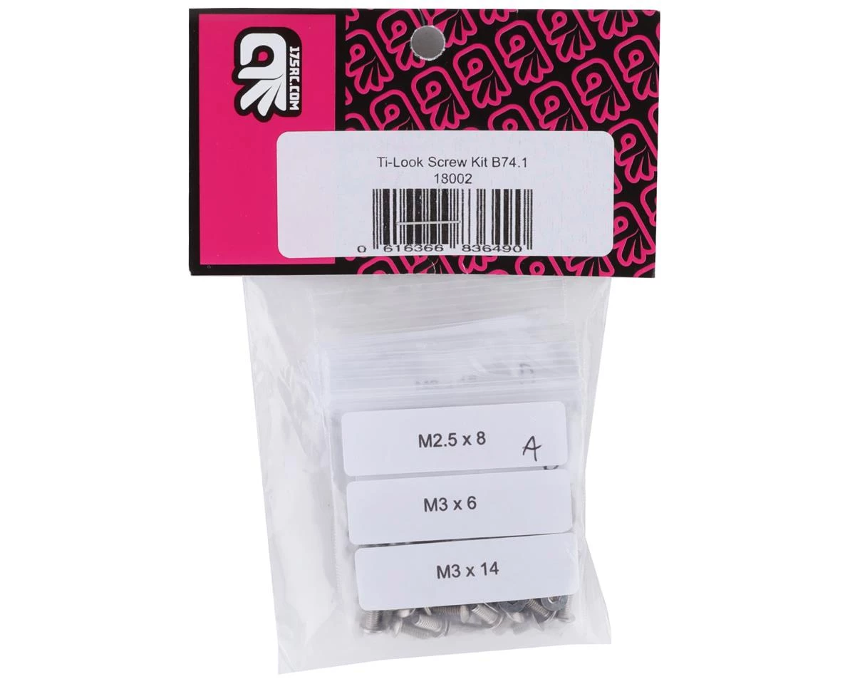 The 175RC RC10B74.1 “Ti-Look” Screw Kit gives your ride the Factory look, without the factory price tag. Not just a box or bag full of screws, the 175RC screw kit comes in labeled bags with descriptions for an easy install.