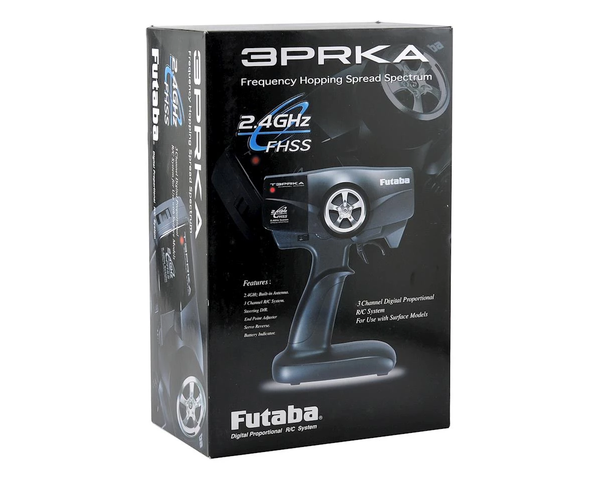 This is the Futaba 3PRKA 2.4GHz FHSS Radio System. Futaba designed the 3PRKA 2.4GHz radio for drivers looking for an economically priced system that has impressive performance and high quality. The 3PRKA is great for new drivers just starting out and for drivers who want to upgrade the radio in their ready-to-run model. It offers a ton of features at a remarkably low price.