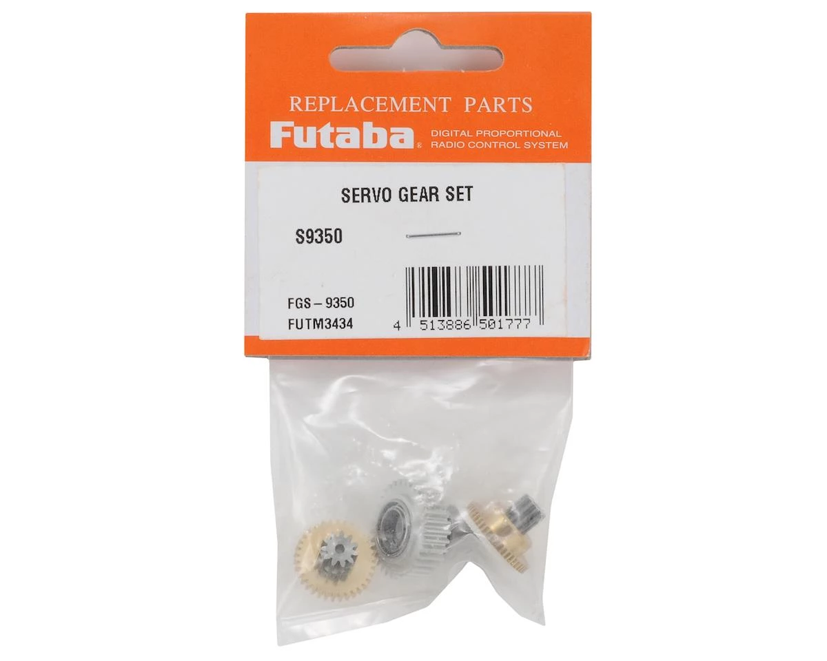 This is a replacement Futaba Servo Gear Set and is intended for use with the Futaba S9350 Servo. This gear set will allow you to restore the gear train in your S9350 servo to like new condition. This package includes one steel gear with pre-installed ball bearings, two aluminum/brass gears and one nylon gear.